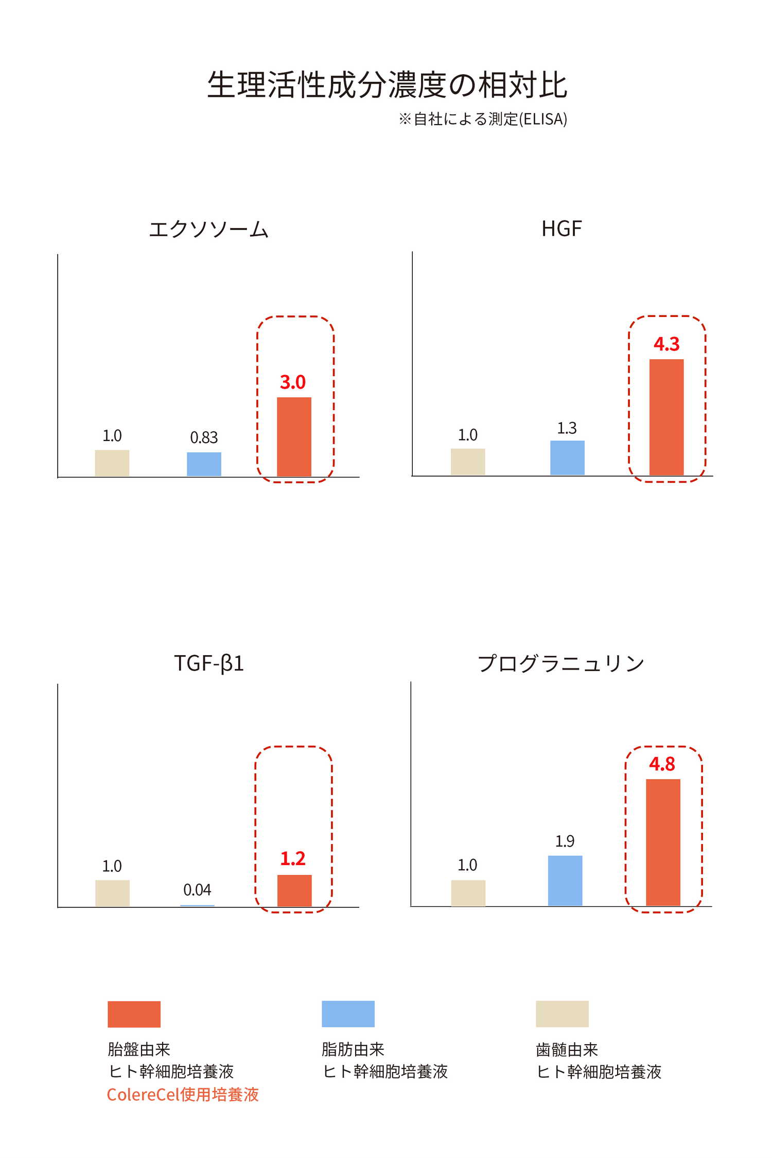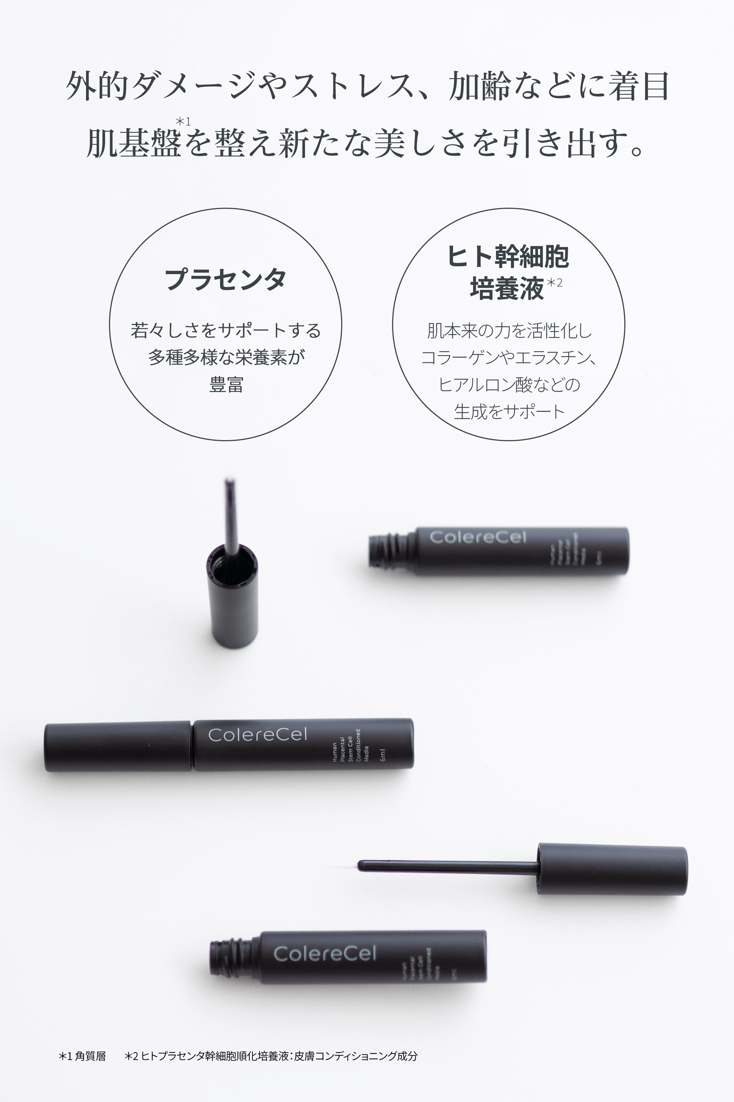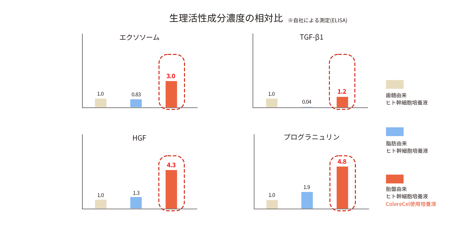 だからこそColereCelは、高品質を追求したヒトプラセンタ幹細胞順化培養液を配合。