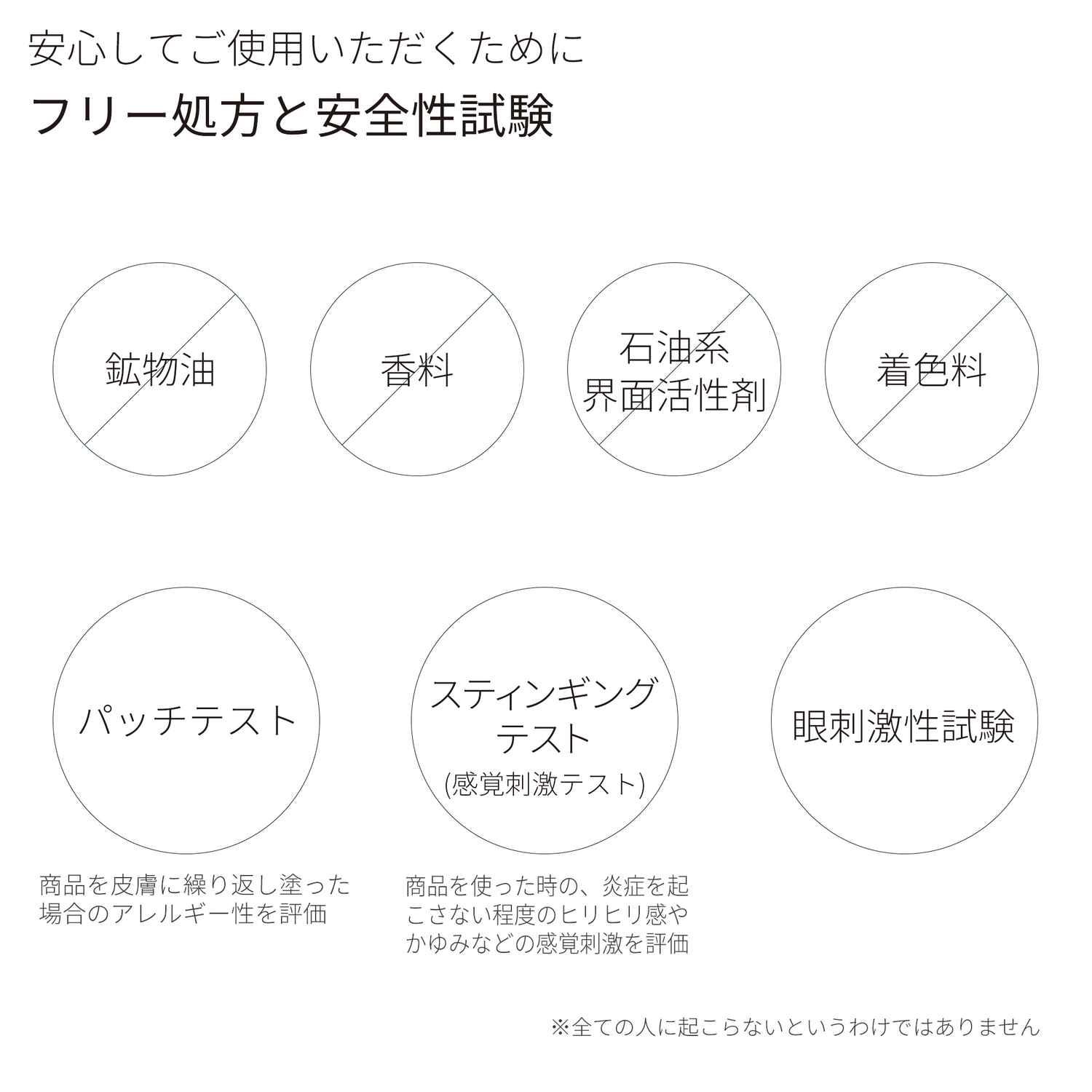 お肌にやさしい処方のため安心してお使いいただける商品ですが、ご心配な方はご使用前に腕などでパッチテストを行うことをおすすめします。