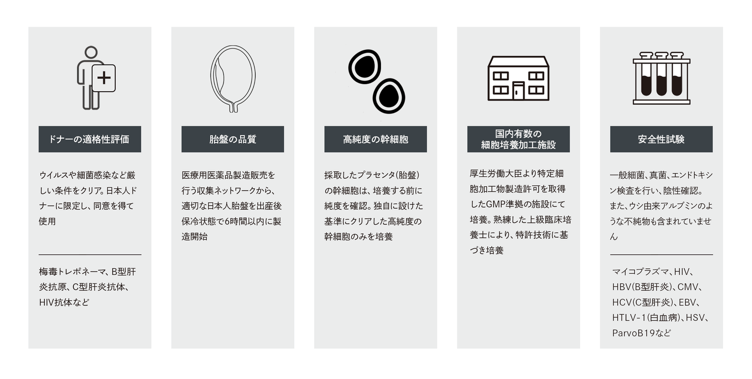 ColereCelのヒトプラセンタ幹細胞順化培養液の品質と安全性